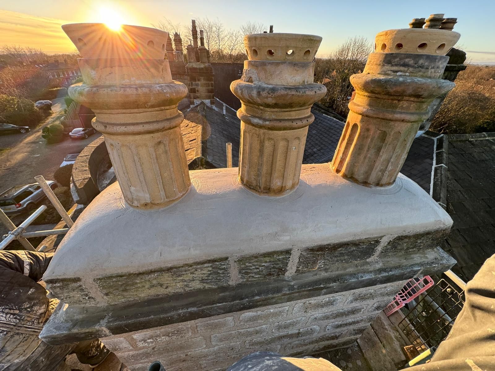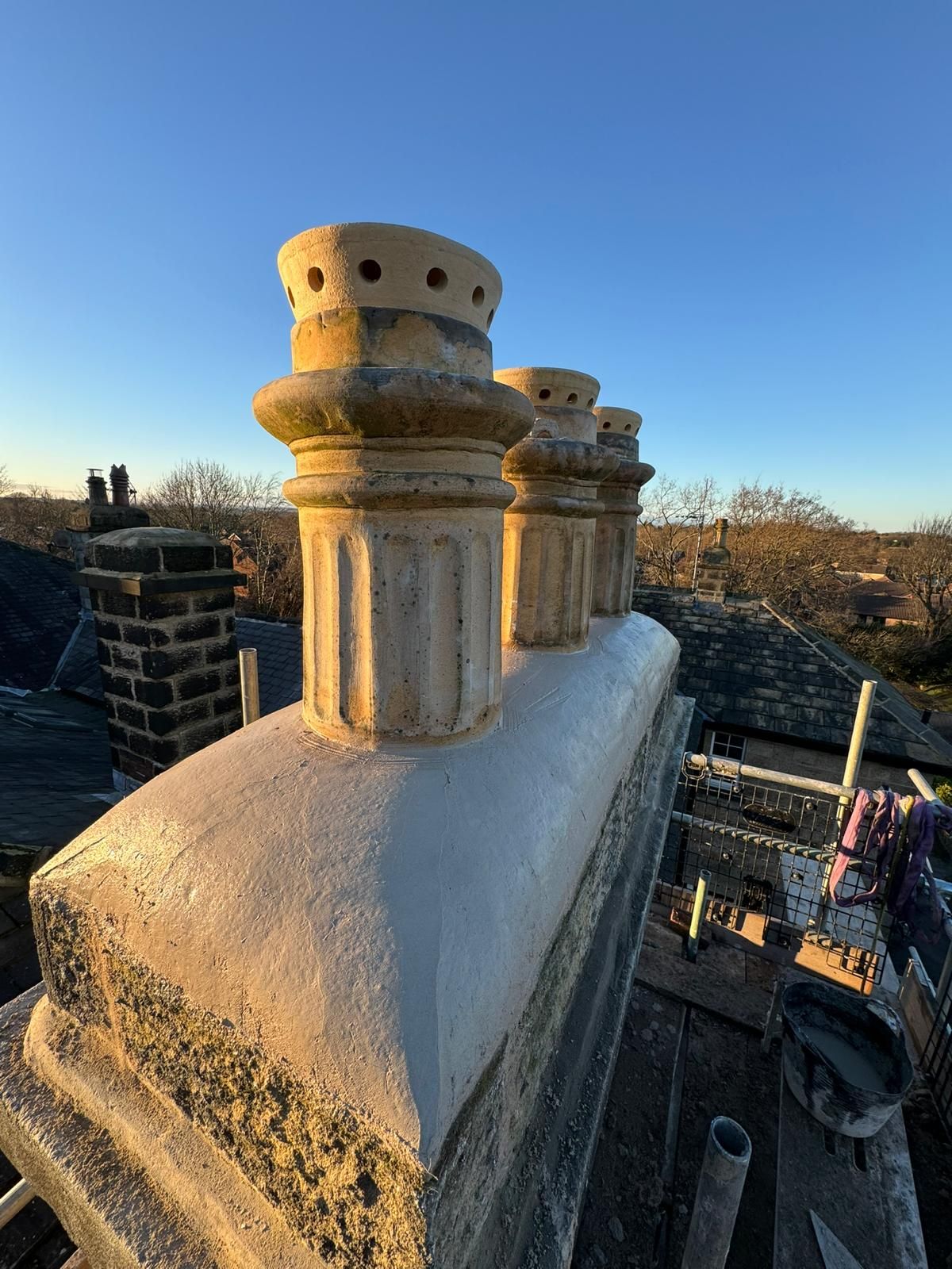 Lime mortars were used extensively in the construction of historic properties and is a material that has been around for centuries. Lime mortar allows for the building to breathe by expelling any moisture out through the joints of the brickwork or stonework. We carry out Lime mortar work to chimney stacks, gable ends and ridge lines.